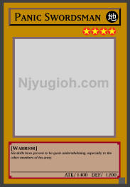 Panic Swordsman EARTH / Warrior / Level 4 / ATK 1400 / DEF 1200 His skills have proven to be quite underwhelming, especially to the other members of his army. SUPER RARE |