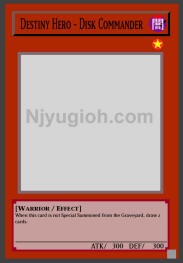 Destiny Hero - Disk Commander DARK / Warrior / Level 1 / ATK 300 / DEF 300 When this card is not Special Summoned from the Graveyard, draw 2 cards. SUPER RARE |