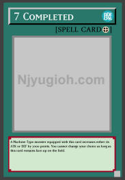 7 Completed Equip Spell A Machine-Type monster equipped with this card increases either its ATK or DEF by 7000 points. You cannot change your choice as long as this card remains face-up on the field. COMMON |