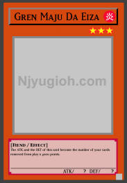 Gren Maju Da Eiza FIRE / Fiend / Level 3 / ATK ? / DEF ? The ATK and the DEF of this card become the number of your cards removed from play x 4000 points. COMMON |