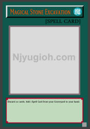 Magical Stone Excavation Normal Spell Discard 20 cards. Add 1 Spell Card from your Graveyard to your hand. ULTRA RARE  |