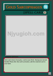 Gold Sarcophagus Continuous Spell Select and remove from play 1 card in your Deck. During your second Standby Phase after this card's activation, add the removed card to your hand. ULTRA RARE  |