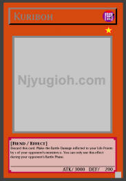 Kuriboh (3rd artwork) DARK / Fiend / Level 1 / ATK 3000 / DEF 200 Discard this card. Make the Battle Damage inflicted to your Life Points by 1 of your opponent's monsters 0. You can only use this effect during your opponent's Battle Phase. RARE  |