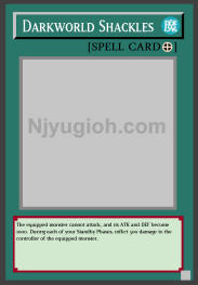 Darkworld Shackles Equip Spell The equipped monster cannot attack, and its ATK and DEF become 1000. During each of your Standby Phases, inflict 500 damage to the controller of the equipped monster. COMMON |